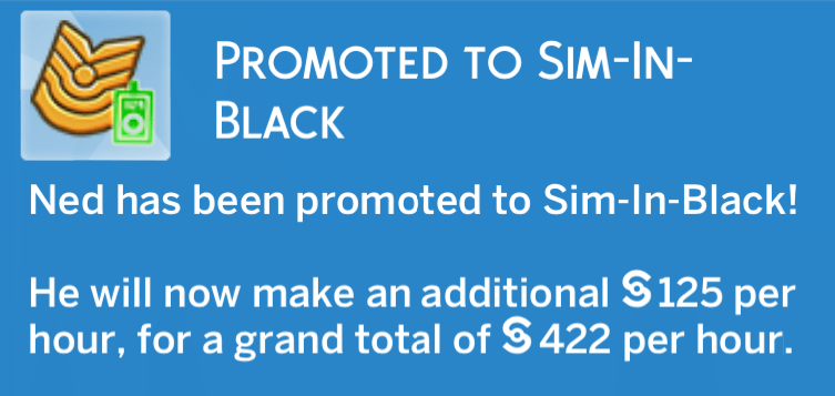 “I’m stuck at this level unless I want to go get a degree. Which I don’t,” Daisy answered. “Just think, now that I’ve maxed out my wellness, I could truly meditate in my very own orchard–my own farm-to-table business! Buttercup would have the best education and training–and make friends! Plus, you wouldn’t be working odd shifts, Ned. We’d have time to be a real family!”